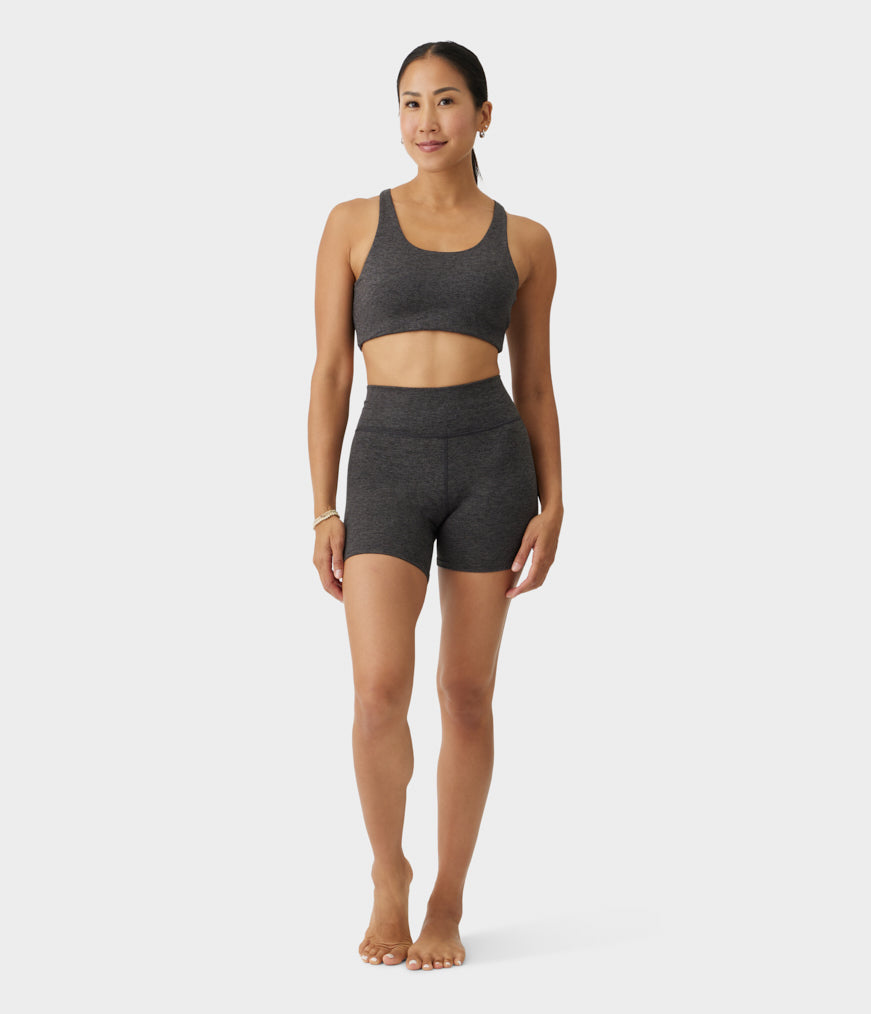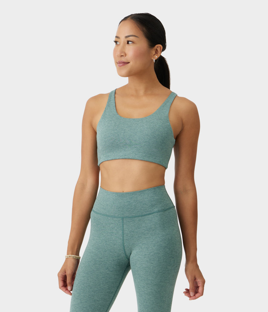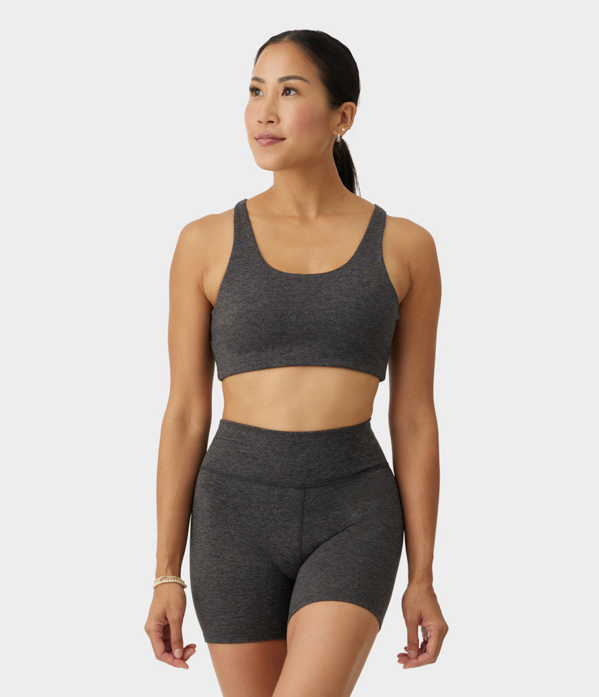 Medium-support racerback-bh med blødt, børstet stof og 4-vejs stræk for ubegrænset bevægelse.
