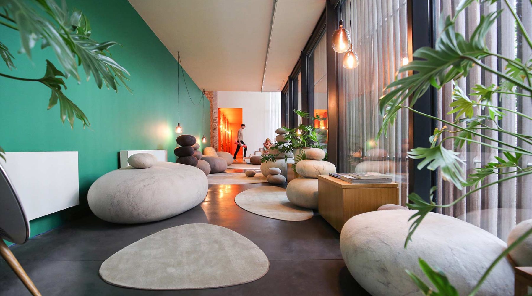 En Yyoga, varios elementos clave de diseño contribuyen a nuestra atmósfera única. En primer lugar, nuestro mostrador de recepción es una pieza de diseño atemporal hecha de madera recuperada. Incluso después de 10 años, sigue causando una cálida y elegante primera impresión en los visitantes. Nuestra área de descanso es otra característica destacada, ofreciendo un entorno espacioso donde las personas pueden socializar, disfrutar de una taza de té y simplemente relajarse mientras admiran el jardín exterior. Uno de nuestros elementos de diseño característicos es el uso de cojines de roca, estratégicamente colocados por todo el estudio. Estos cojines no solo añaden un toque de belleza natural, sino que también sirven como una invitación a encontrar paz y liberación durante la práctica de yoga. Juntos, estos elementos de diseño crean un espacio acogedor y sereno que distingue a Yyoga y fomenta un sentido de tranquilidad para nuestra comunidad.