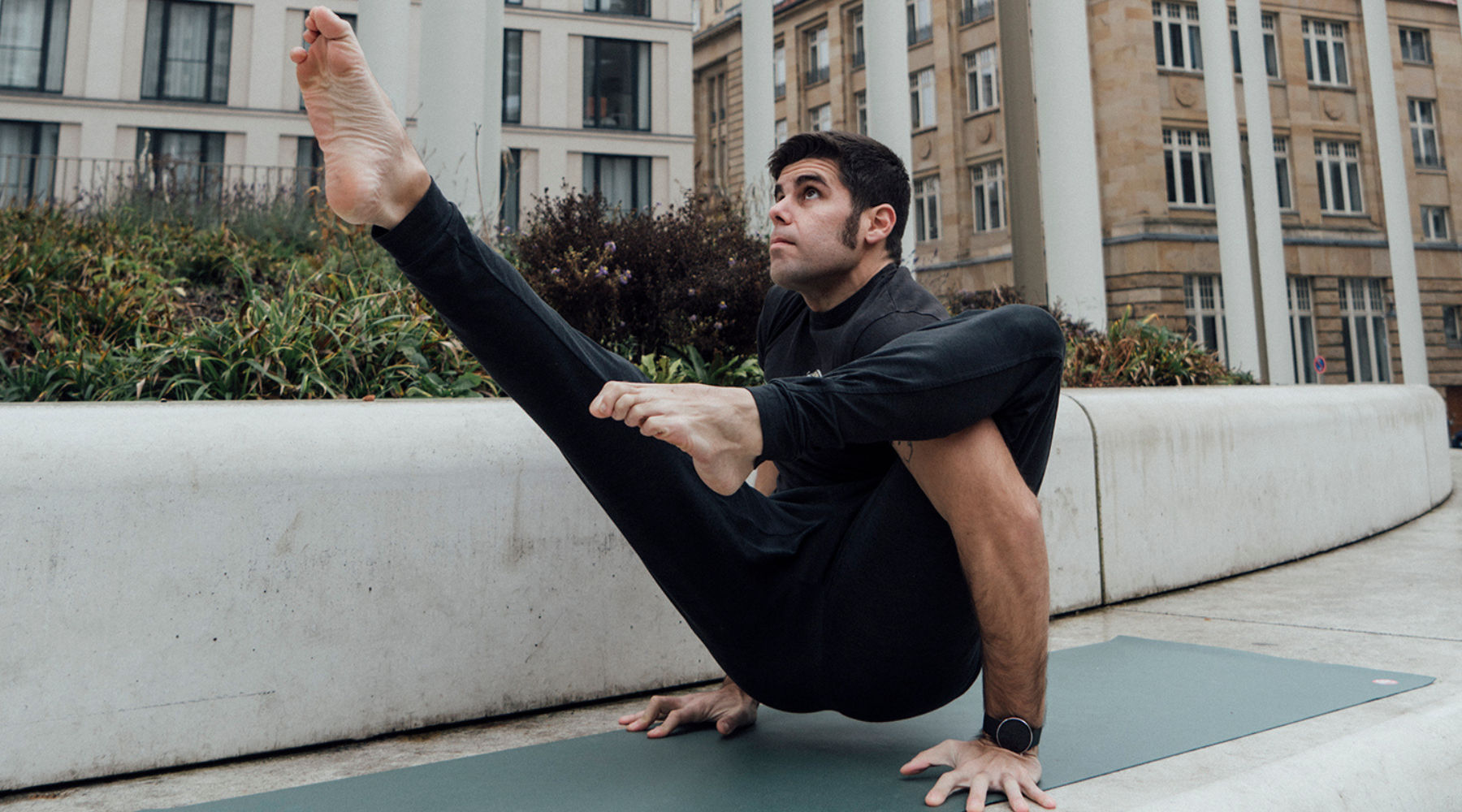 Miles, originario della Grecia e ora a Lipsia, in Germania, combina yoga, inversioni e calistenia...