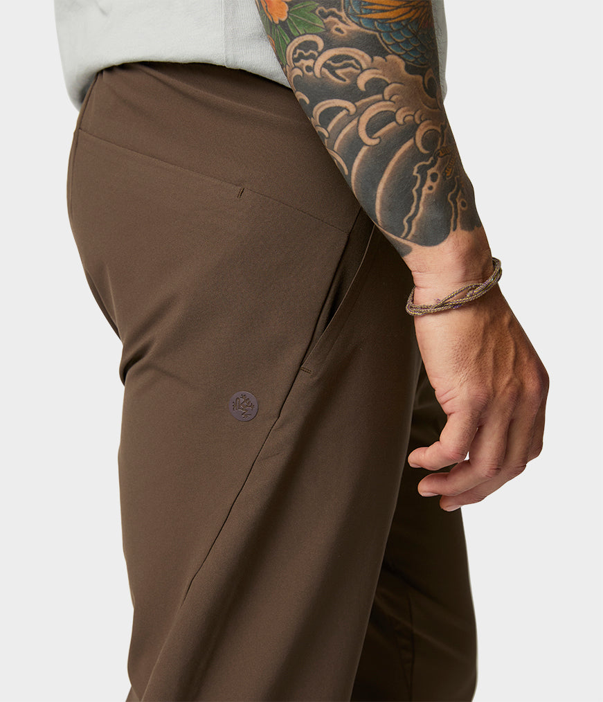Calças leves de desempenho feitas de materiais reciclados - e totalmente recicláveis.