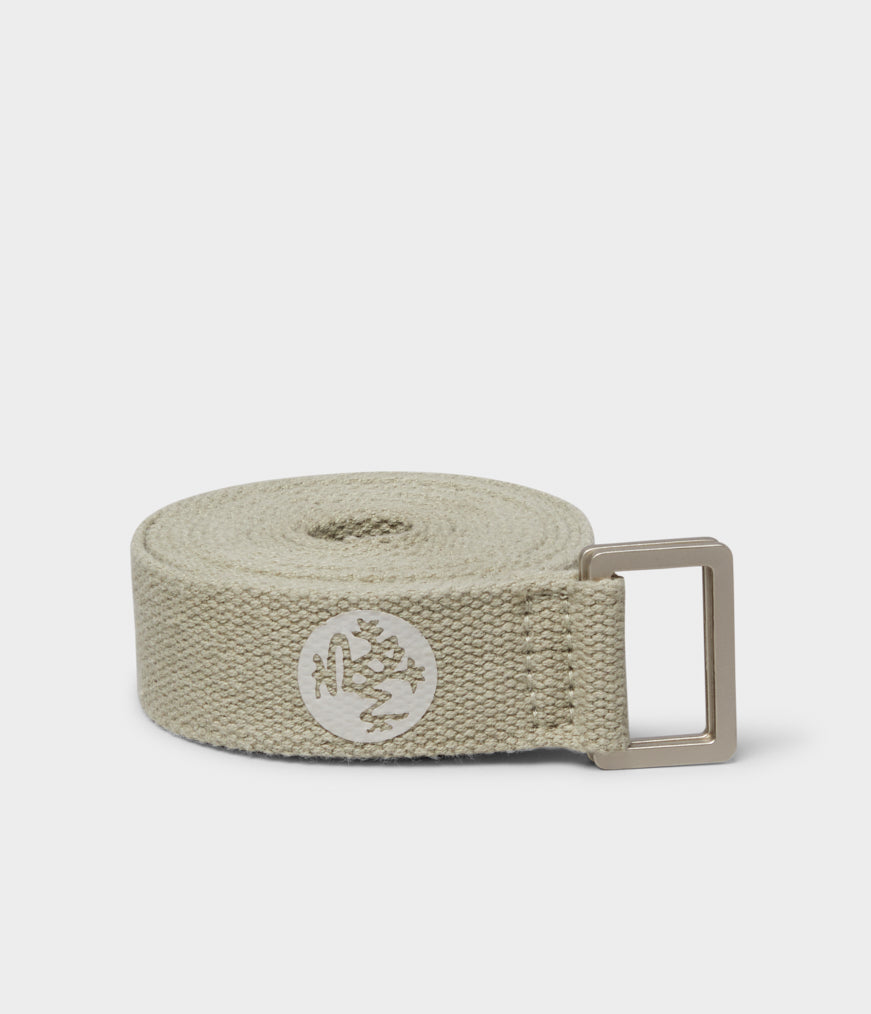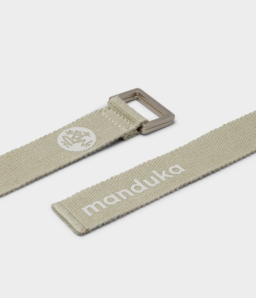 A alça UNfold da Manduka tem um perfil quadrado com fivela de anel em D tradicional e é feita de algodão não branqueado.