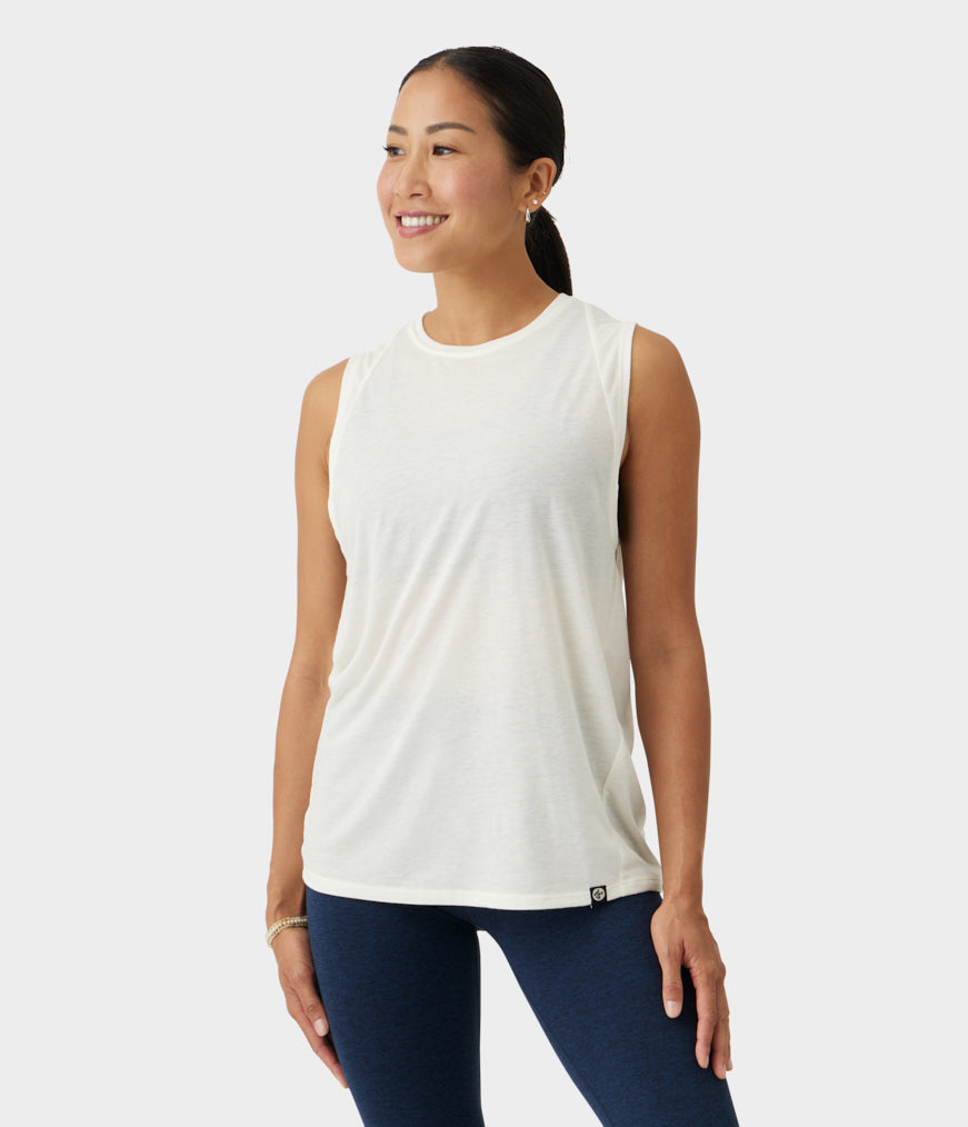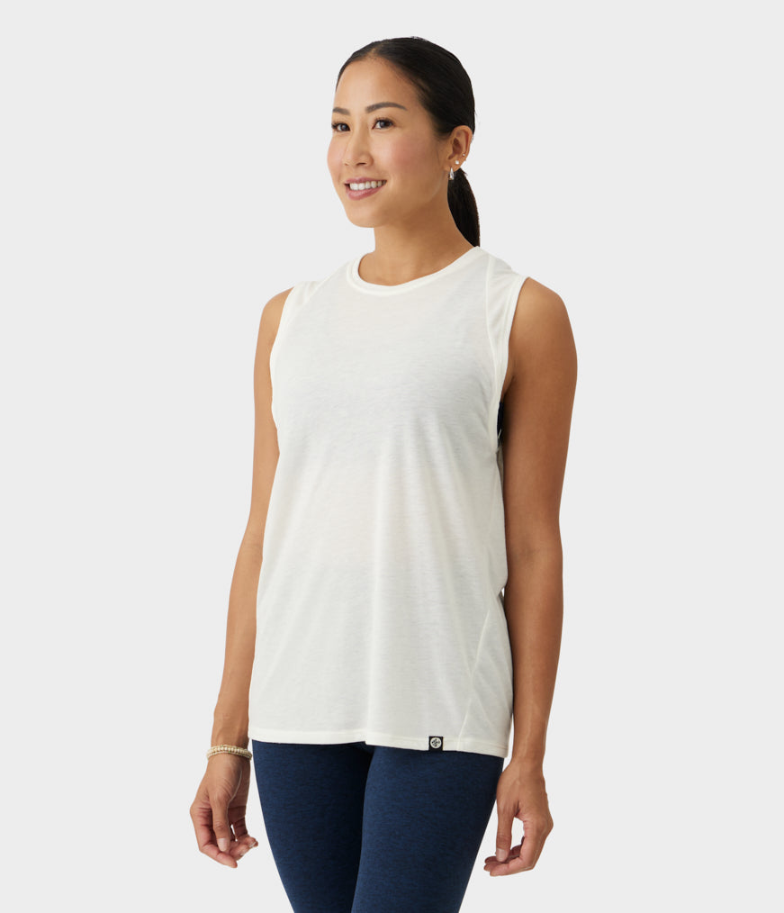 Camisola leve e que absorve a humidade, com um corte largo e comprimento extra para maior cobertura em cada movimento.